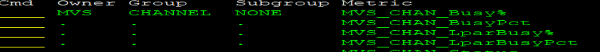 If you scroll to the right on the METRICS MVS command, you will see a new data column "AliasOf". This will show that MVS_CHAN_Busy% is an alias of MVS_CHAN_BusyPct.