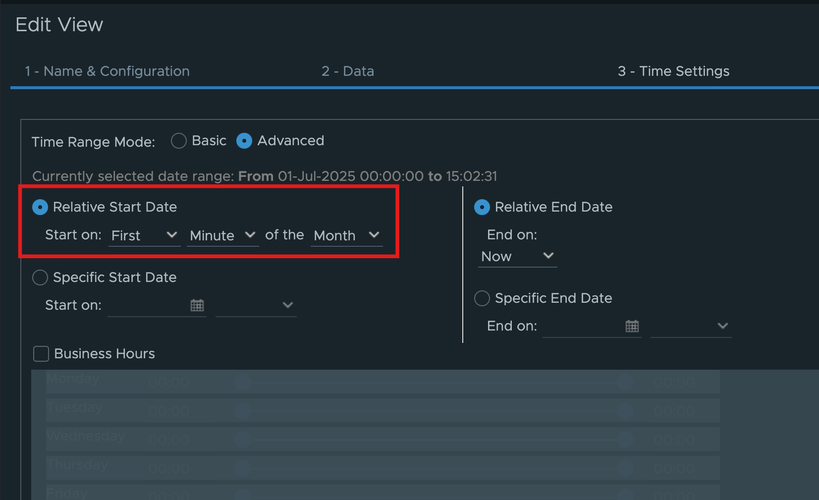 Following configurations will fail to calculate Month to Date data using daily metrics in custom 'VIEW'.