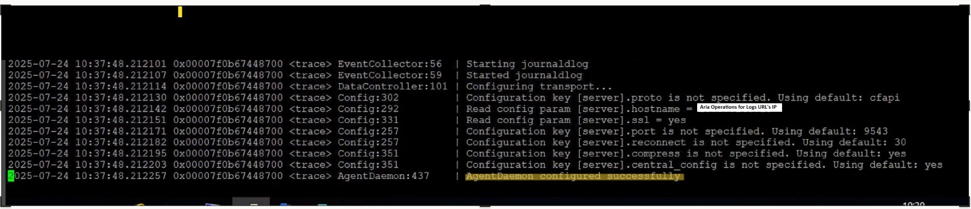 ): 2021-08-11 18:38:15.165892 0x00001a28 <trace> CFApiTransport:128 | Re-connecting to server '<Aria Operations for Logs FQDN>'