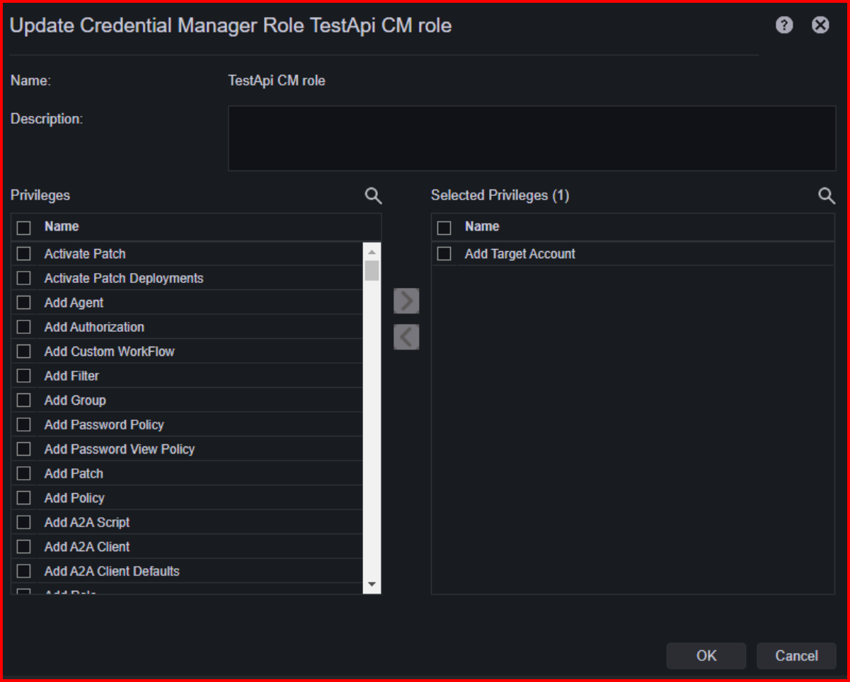 Creating a Credential Manager role for user that has access to add target accounts via API Key in PAM.