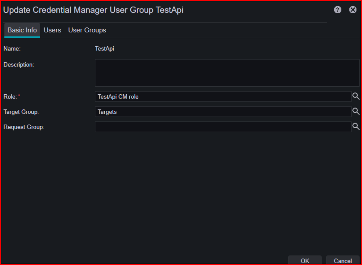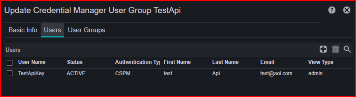 Add user "TestApiKey" to Credential Manger Group "TestApi"