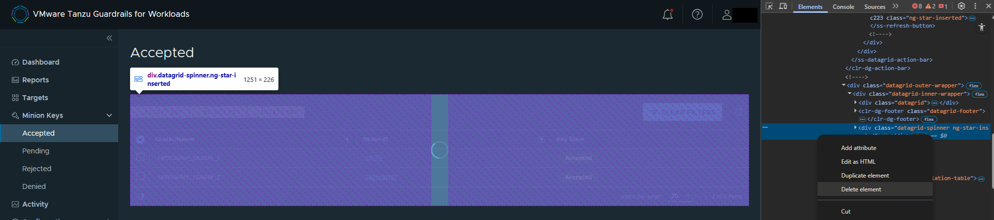 If removing the spinner does not activate the Filter or Clear Filter buttons, then the box behind the spinner needs to be removed. See this example from the Minion Keys > Accepted page: