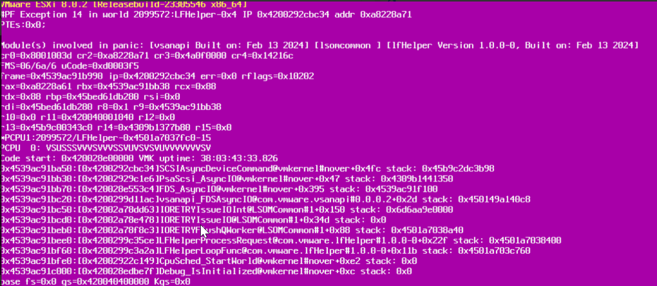 ESXi host experiences purple screen fault with reference to lsomcommon