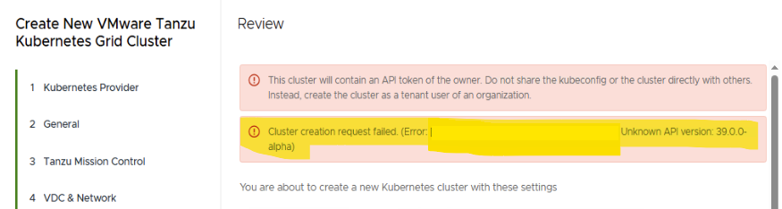In a multisite environment, the site running VCD 10.5.1 still uses API version 39.0.0-alpha. In VCD 10.6.1.1, this version was renamed to 39.0.0.