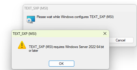 <package Name> (MSI) requires Windows Server 2022 64 bit or later.