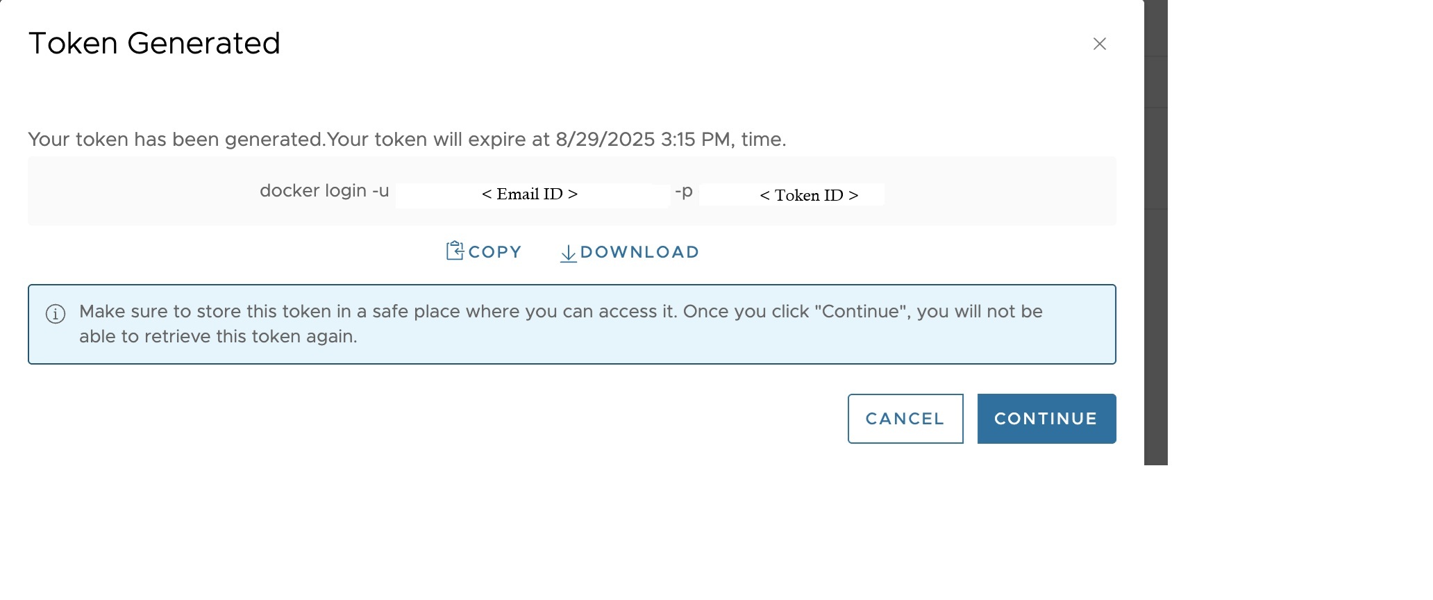 Generate Token from Marketplace Console that require authentication and add Registry credential in VCD: