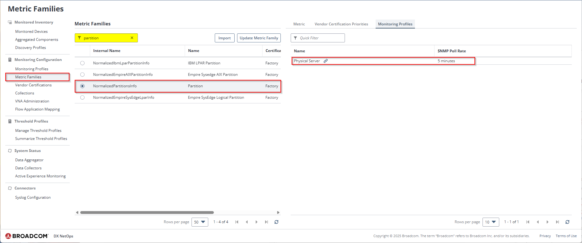 1) In Monitoring Profiles, search for Physical Server, click on Copy button and supply the new Name and Description for the Monitoring Profile. Just keep the Partition Metric Family, remove all the others. Then save the changes.