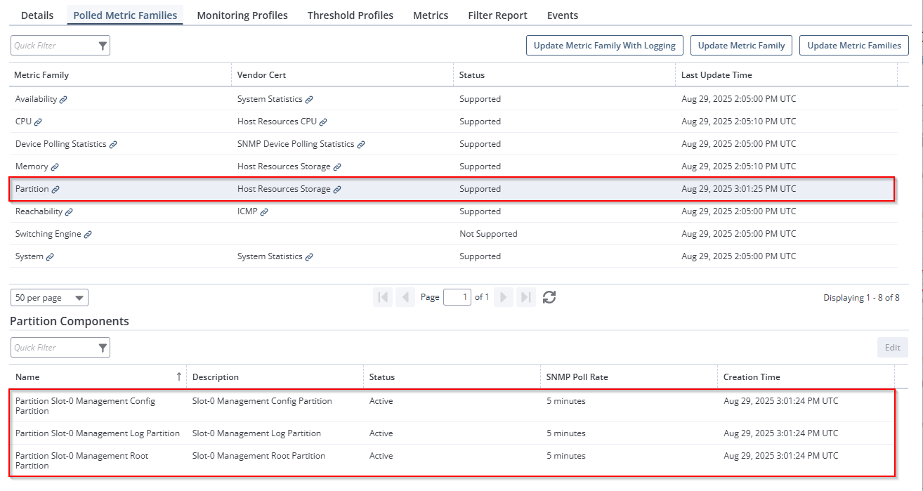 3) The Partition Metric Family will be displayed under the Polled Metric Families of the Palo Alto Network devices.