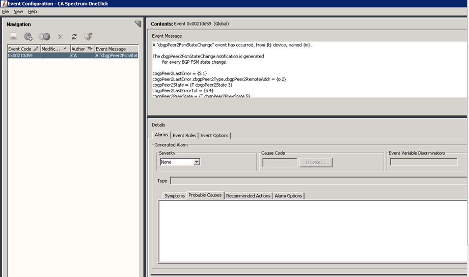 Once all of these steps have been completed SpectroSERVER will poll and alarm from BGP Manager when you have lost a BGP session