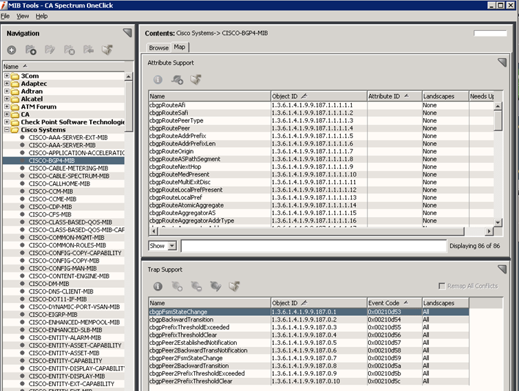 5. Once Mibtools has opened up on the left hand side find Cisco and expand it to see the Cisco-BGP4-Mib. When you select it you