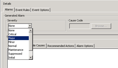 8. For our example, we have decided that when we receive this trap we want to create a major alarm. We click and select Major alarm from the list.