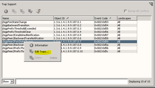cBGPPeer2FsmStateChange, right-click, and select Edit Traps.