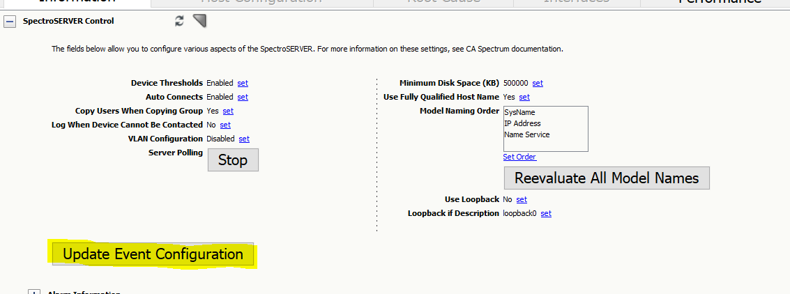13. From a OneClick console, find and select the VNM model, click on the Information tab, find and expand the SpectroSERVER Control