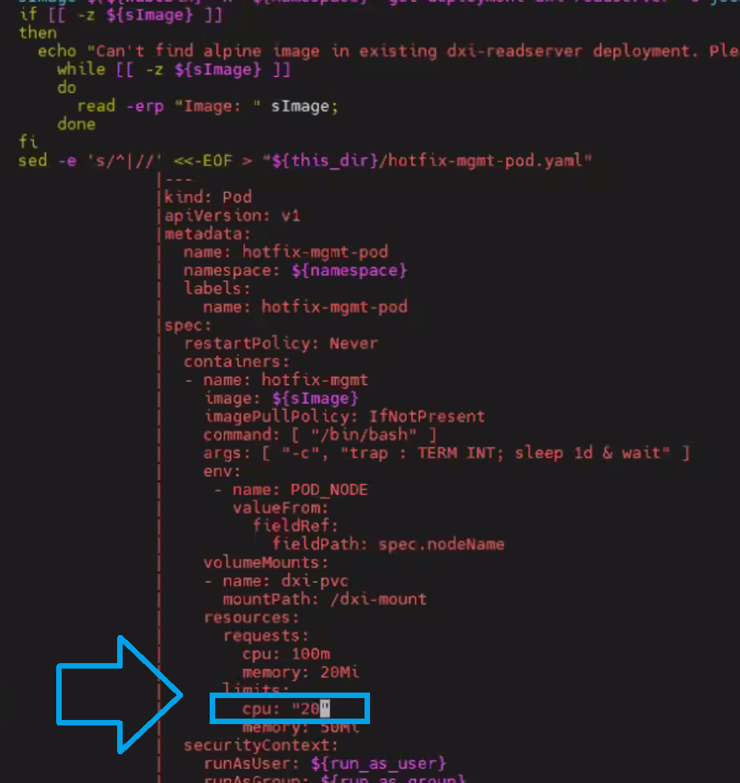 error when creating "./hotfixes/20250113_24.2-DXO2-HF04/hotfix-mgmt-pod.yaml": pods "hotfix-mgmt-pod" is forbidden: maximum cpu usage per Container is 16, but limit is 200