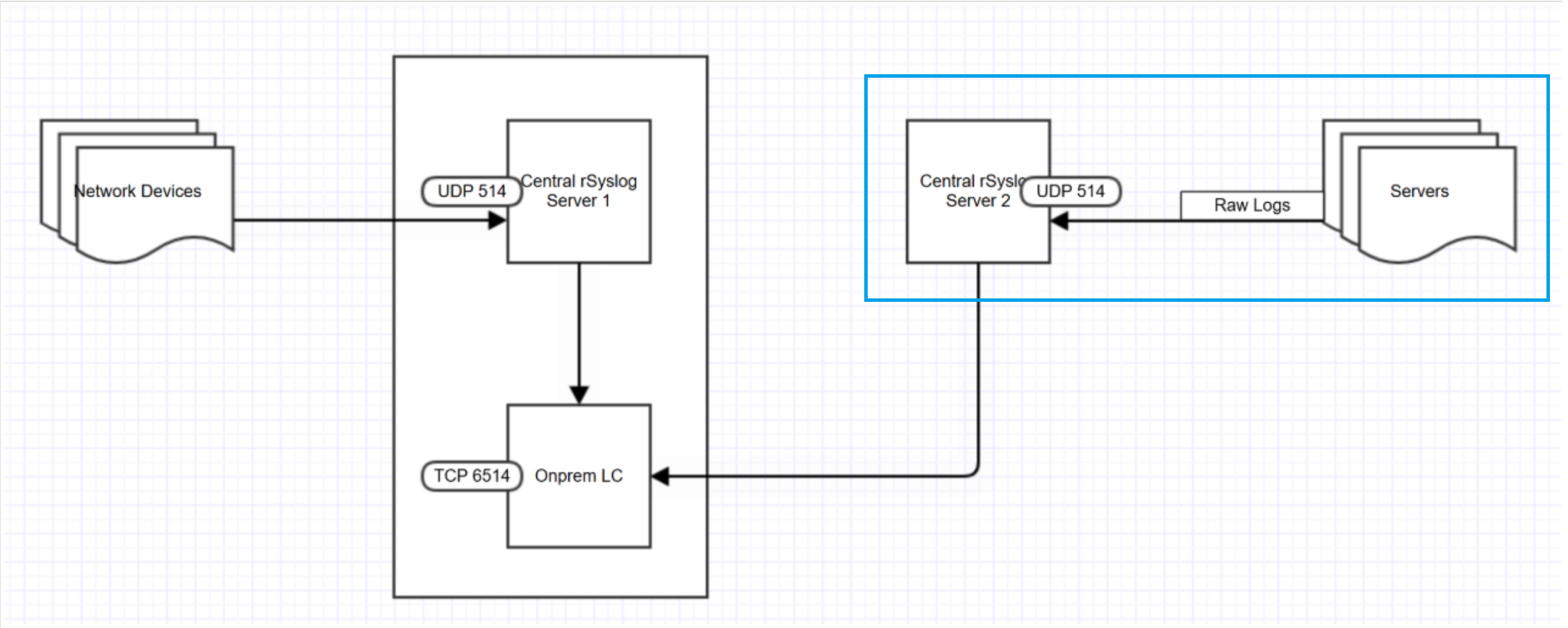 I need to send raw syslog data from multiple spectrum servers to a Central rsyslog which then decorate the data with dxo2 tenant information and forward it to the LogCollector for data ingestion to dxo2. I have Enabled Centralized Syslog Collection for Network Devices with Rsyslog as per below diagram however, in the logcollector log I see the below ParserError: