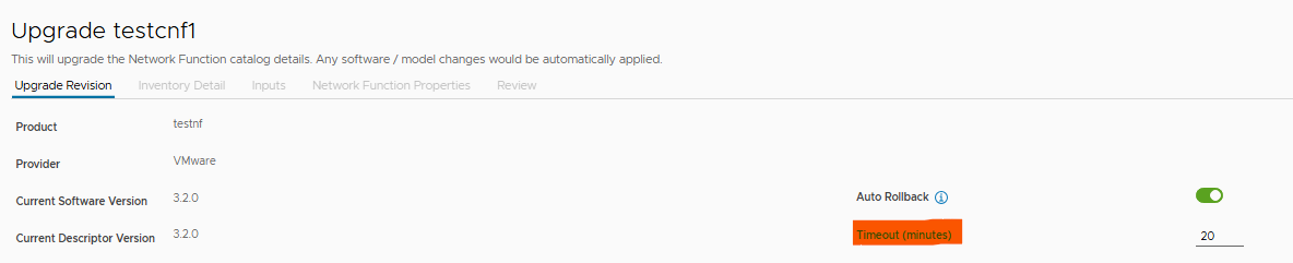 During CNF LCM Operation Upgrade the timeout is set in TCA Manager UI as mentioned below