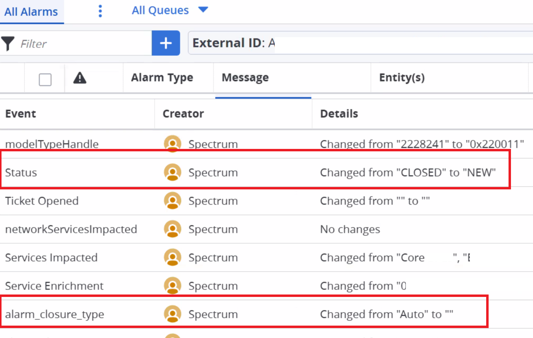 Alarms autoclosure feature and reopen are causing Services not to be linked with the correct alarms