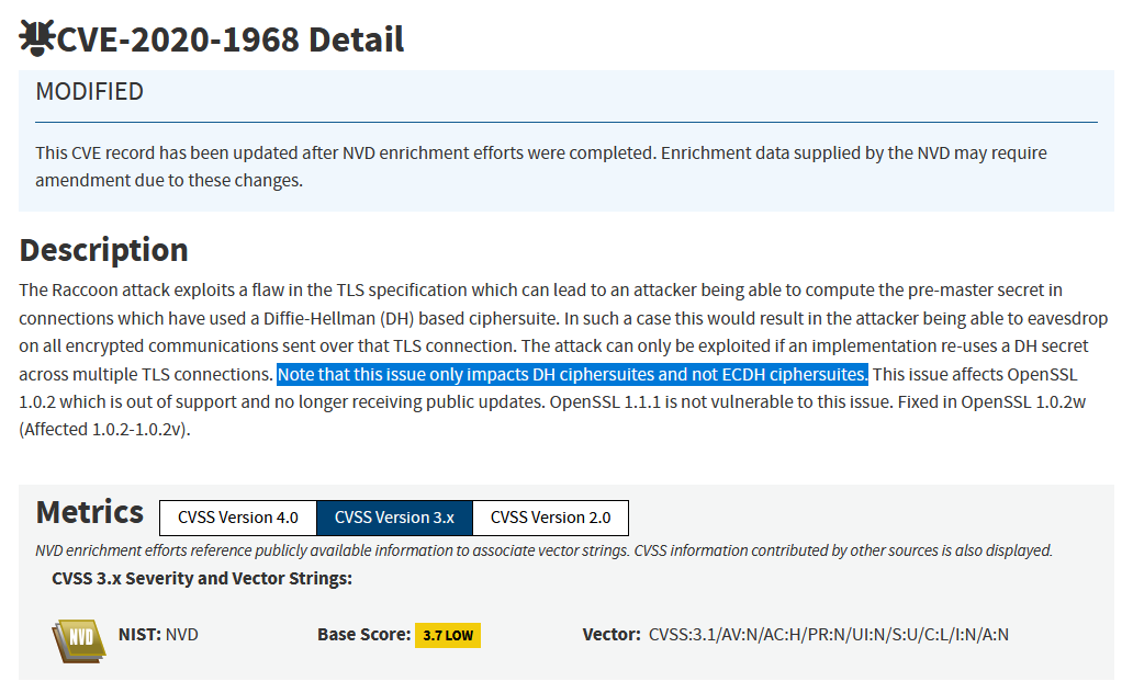 TLS1.2 was mentioned vulnerable to
