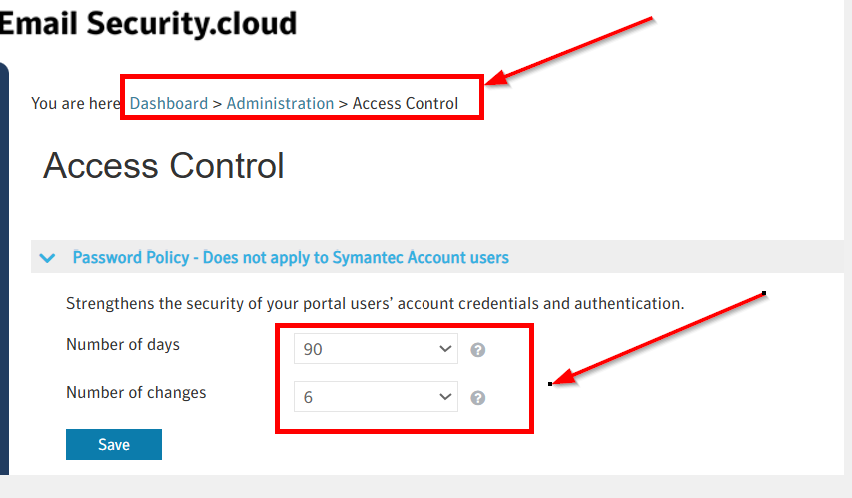 How to set the password policy option for Portal users in Email Security.cloud