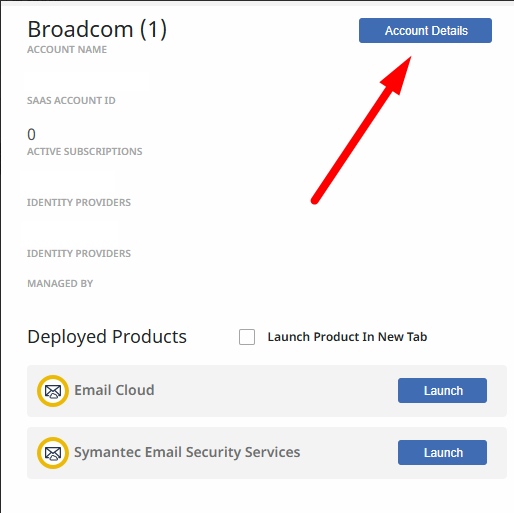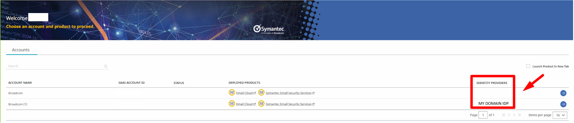 1. Navigate to your Account Security in Broadcom SaaS Portal and click on Blue Arrow for your identity provider configured domain.