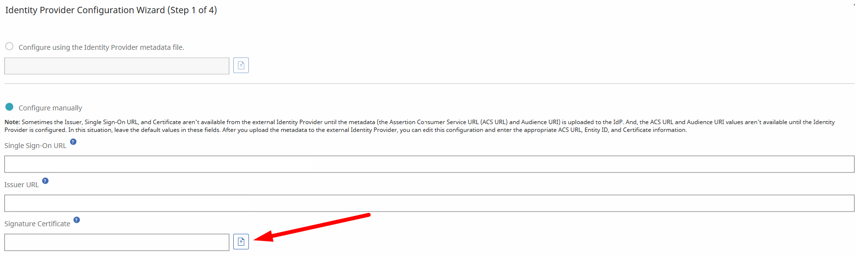 4. IDP configuration will show up for your domain and you can edit it and upload the Signature Ceritficate.