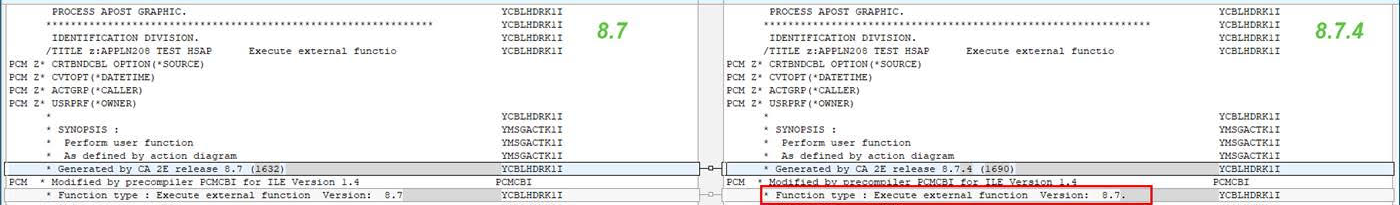 When comparing 2E generated COBOL ILE sources (ie: HLL = CBI), two issues have been identified: