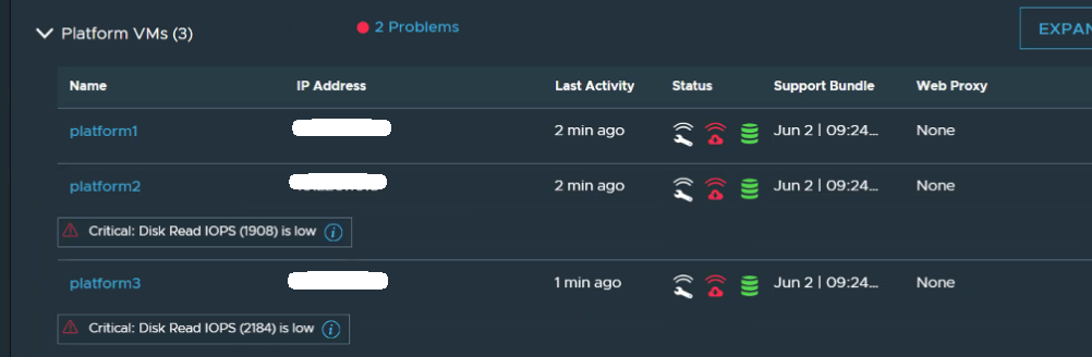 When checking the Platform node read IOPS you see they are considerable different for nodes 2 and 3 for read IOPS: