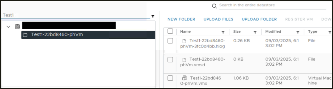 The folder name and files associated with the placeholder virtual machine on the placeholder datastore are suffixed with '-phVm