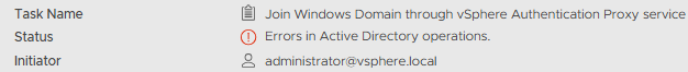 When attempting to join hosts to a windows domain through the authentication proxy the task errors out with a generic "Errors in Active Directory operations" message.