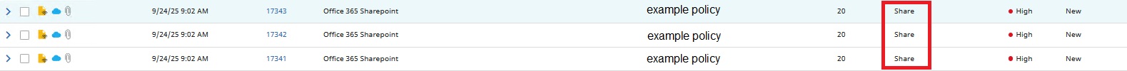 When the folder that contains the file is shared with a new recipient, the Office 365 Securlet will automatically rescan all the files in it.
