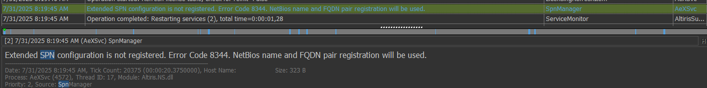 After restarting the SpnManager (AexSVC core module) would try to register SPN attributes in the Domain Controller to enable automatic fallback to NTLM if authentication with Kerberos authentication fails.