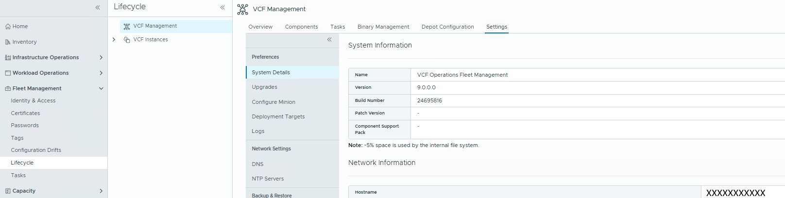 The short name for the hostname is shown in Fleet Management > Lifecycle > VCF Management > Settings