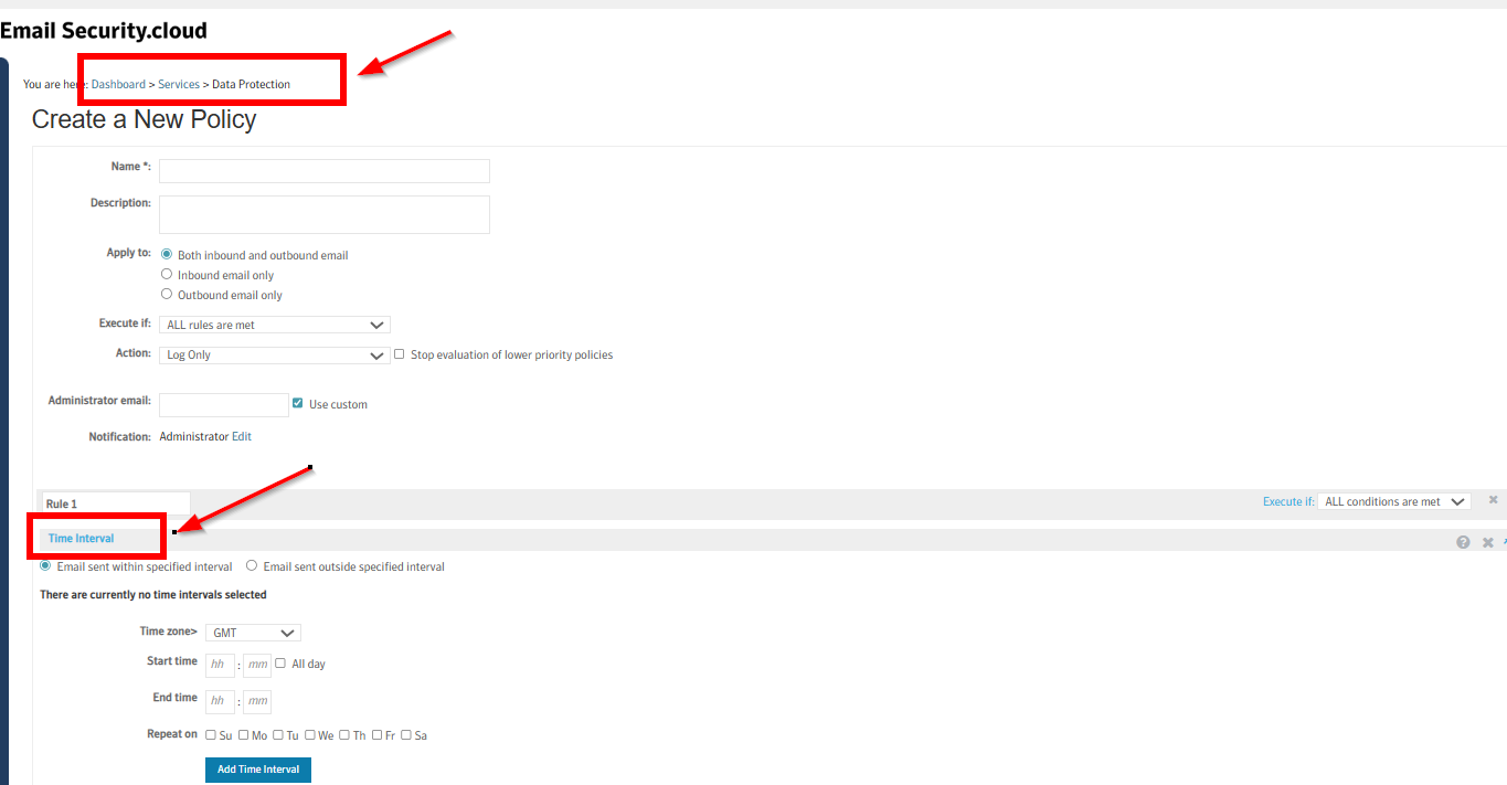 How to add a Time Interval condition to an Email Data Protection policy in Email Security Cloud