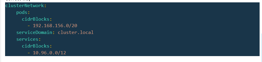You need to add the customNetwork section under the cluster configuration. This is where you Add pod and services CIDR.