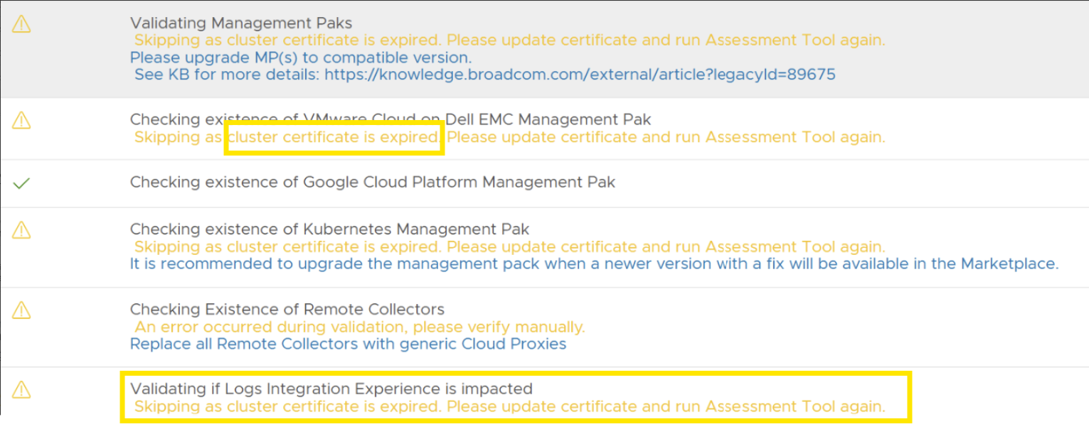 An expired Aria Operations cluster certificate will interrupt the upgrade and cause the admin UI to display a blank screen when installing a software update.