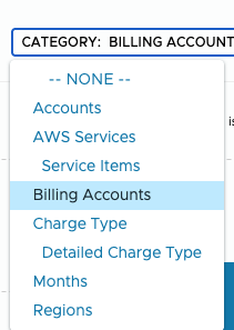 When the user context is within a sub-org (sub organization) using FlexOrgs the "Billing Accounts" AWS report dimension is not available as a "Filters" or "Category" option.