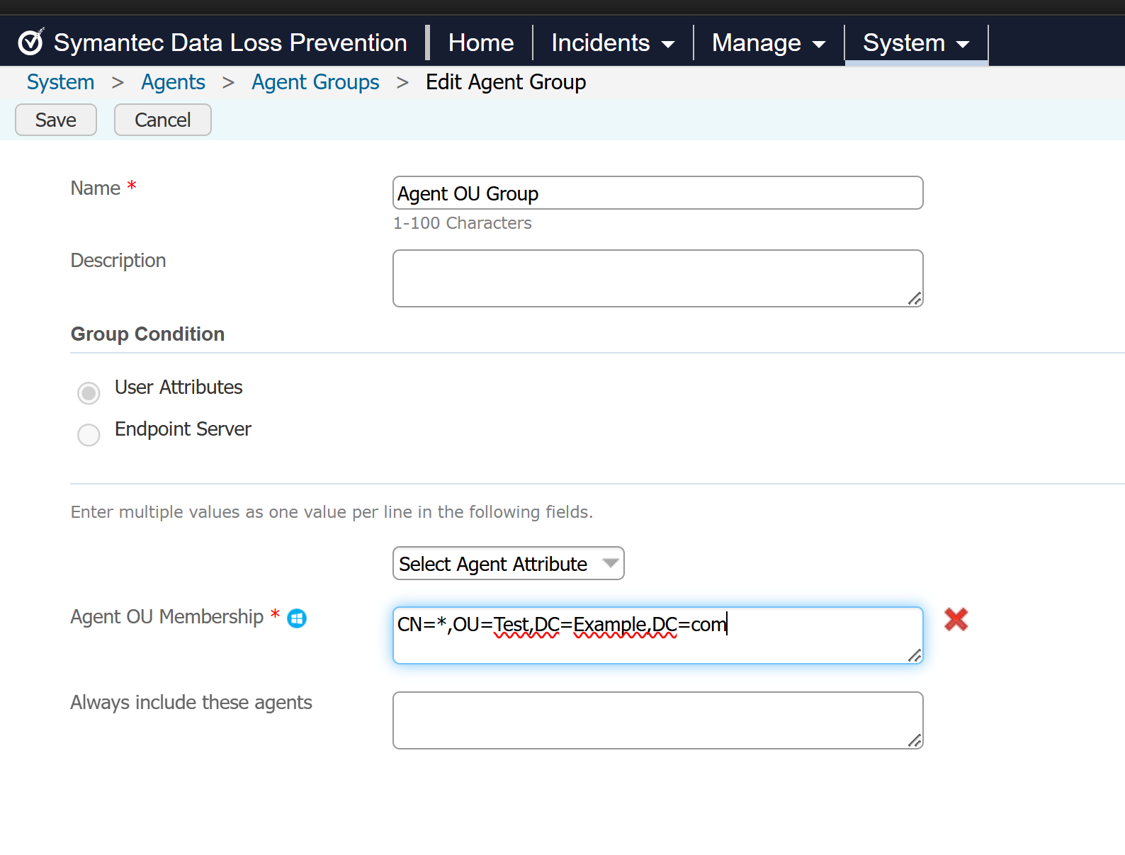 - Name the Agent attribute. For example, "Agent OU Membership"