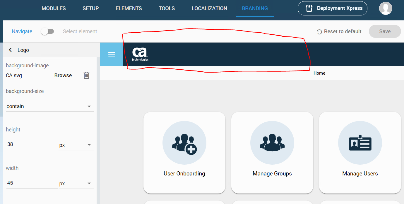 How can we move the Identity Portal branding company logo left or right on the screen