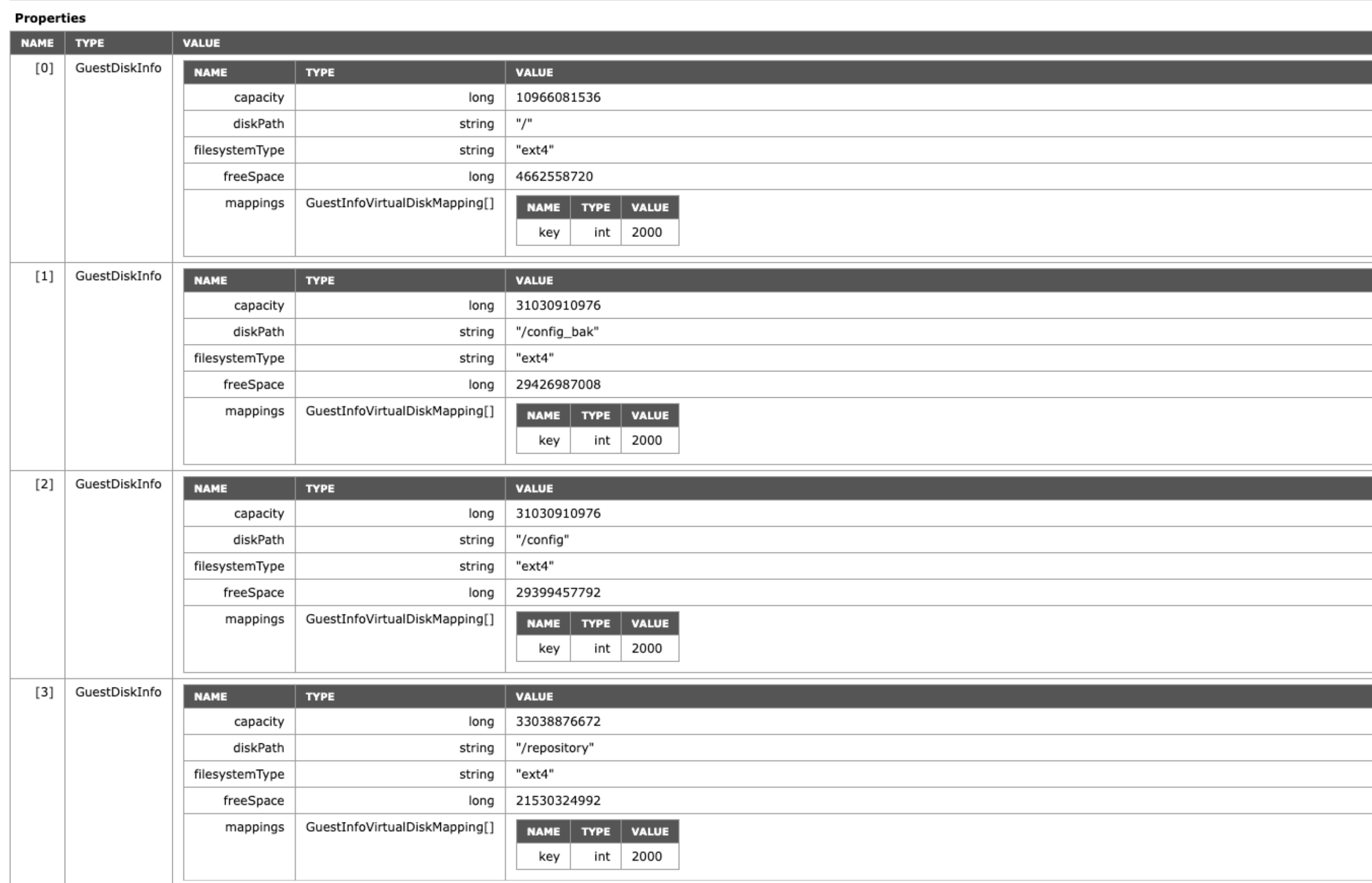 By the following API request, we can get the data which is being published in Aria Operations:https://<vCenter_FQDN>/mob/?moid=<vm-MoRef>&doPath=guest.disk