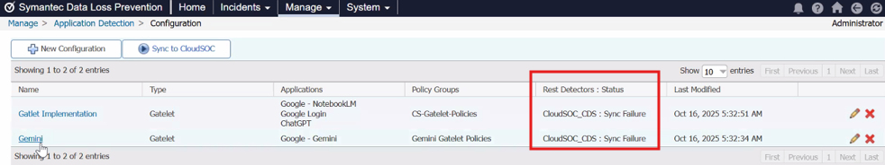 Sync Failure after creating additional policy group for Gatelets for cloud applications in DLP Enforce console: