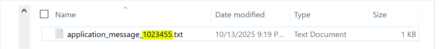 To test it out, change the random PID in the filename extension application_message_#####, each time you want to test the results.