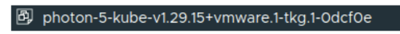 vSphere template had a different name 'photon-5-kube-v1.29.15+vmware.1-tkg.1-0dcf0e' on vCenter Server