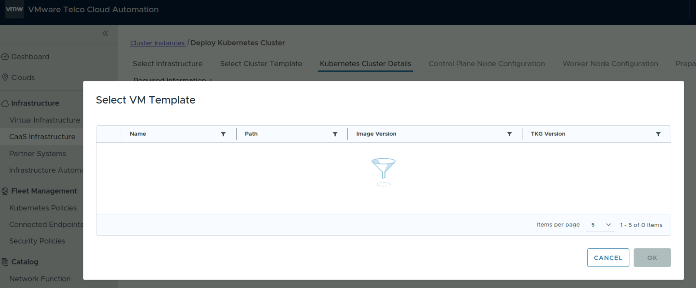 While deploying Kubernetes cluster from TCA-M, unable to find photon-os kubernetes cluster template