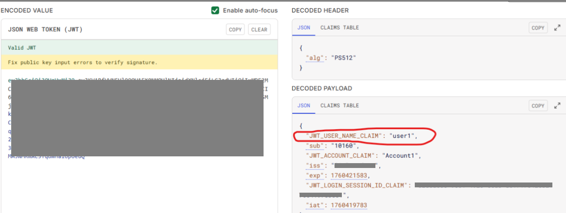 If you decode this token, the key JWT_USER_NAME_CLAIM contains the user ID. Browser agents can read the JWT token, decode it, and retrieve the user ID for external purposes.