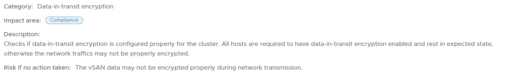 Data-in transit encryption is not matching on all hosts, This causes the hosts to not be able to fully form a cluster due to one or more hosts requiring data to be encrypted over the network.