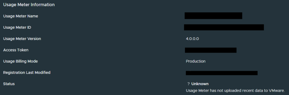 An unexpected state 'Unknown' of Usage Meter appliance is being displayed within the VCF Business Services Console.