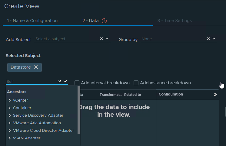 Aria Operations view editor does not show expected objects as Ancestor/Descendant in the drop down despite this relationship being present for certain objects.