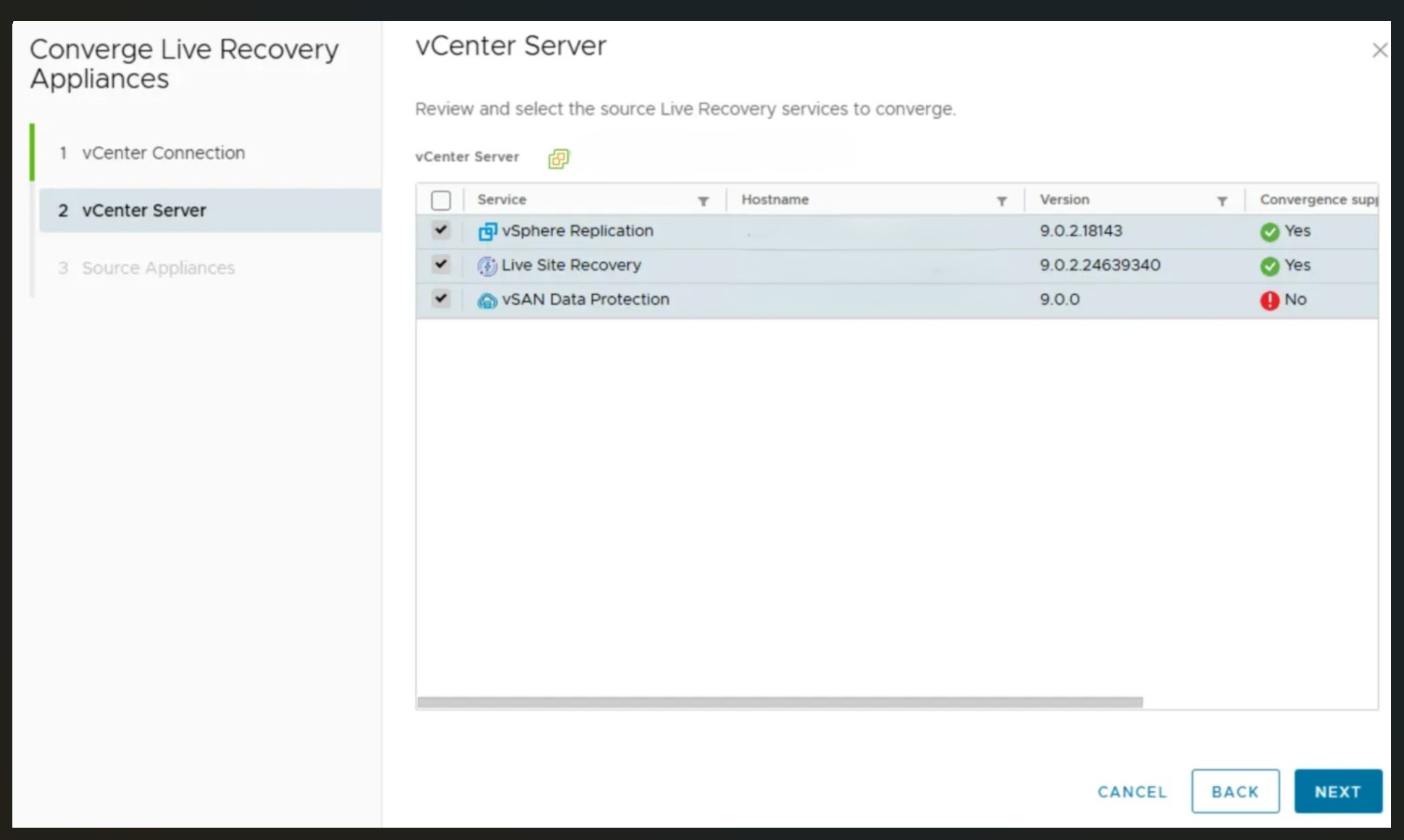 Unable to proceed with Live Recovery convergence due to a stale vSAN Data Protection plugin registration that is not in use.