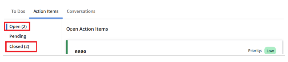 The Action item Status counter has been moved