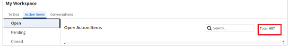 Up to Clarity 16.2.3, the counter displays next to the Action Item Status values when you access the Action items Workspace:
